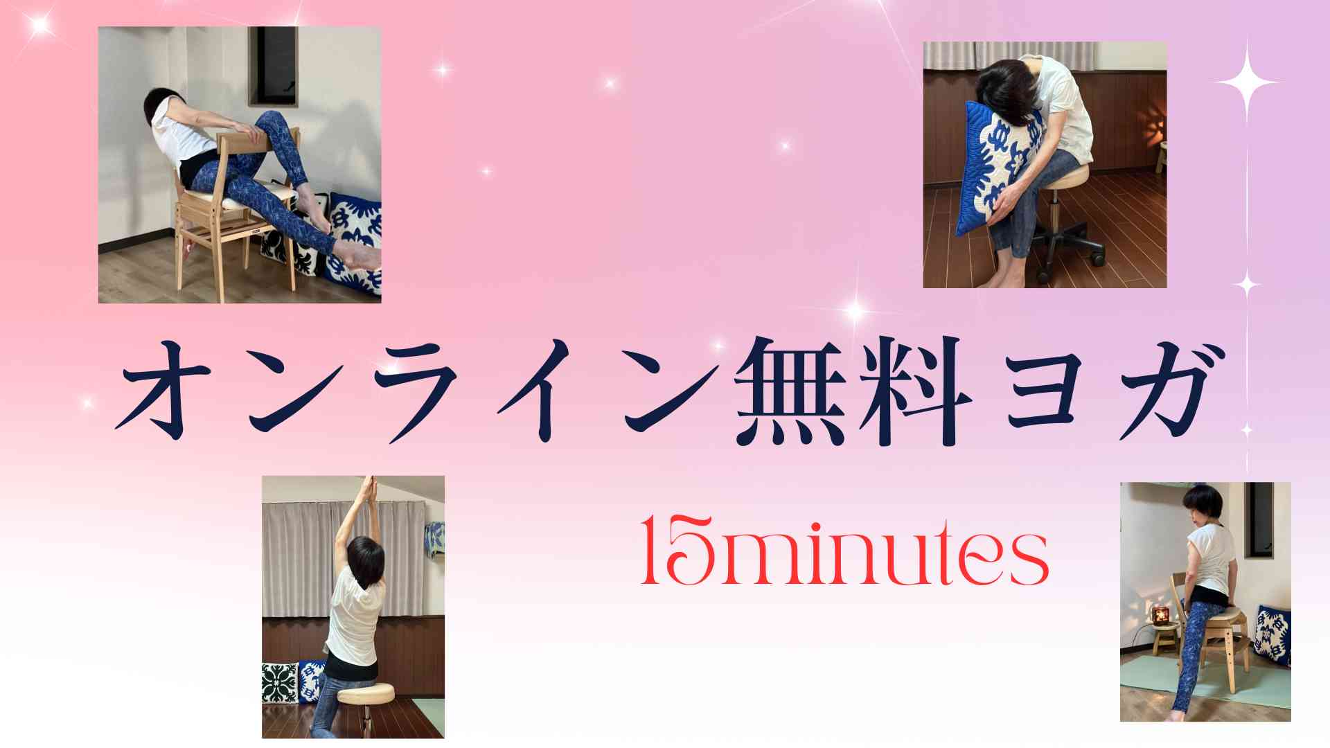 全国どこからも参加できる15分の無料オンラインヨガのご案内です。難しいポーズはありません。イスに座っておこなう「チェアヨガ」なので、体力に自信がない方やデスクワークの合間にリフレッシュしたい方にぴったりです。ぜひお気軽にご参加ください。