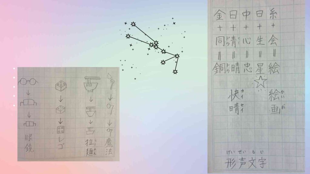 4つの種類を学習したら、オリジナルの漢字を作って遊んでみました。