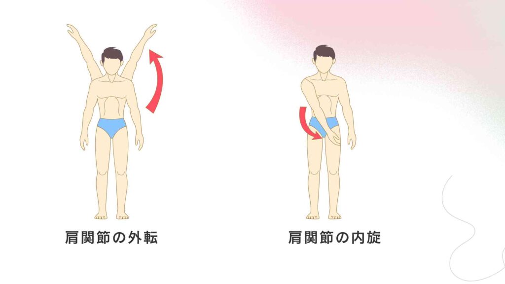 肩関節の外旋:上腕がその長軸を中心に外側へ回る動き