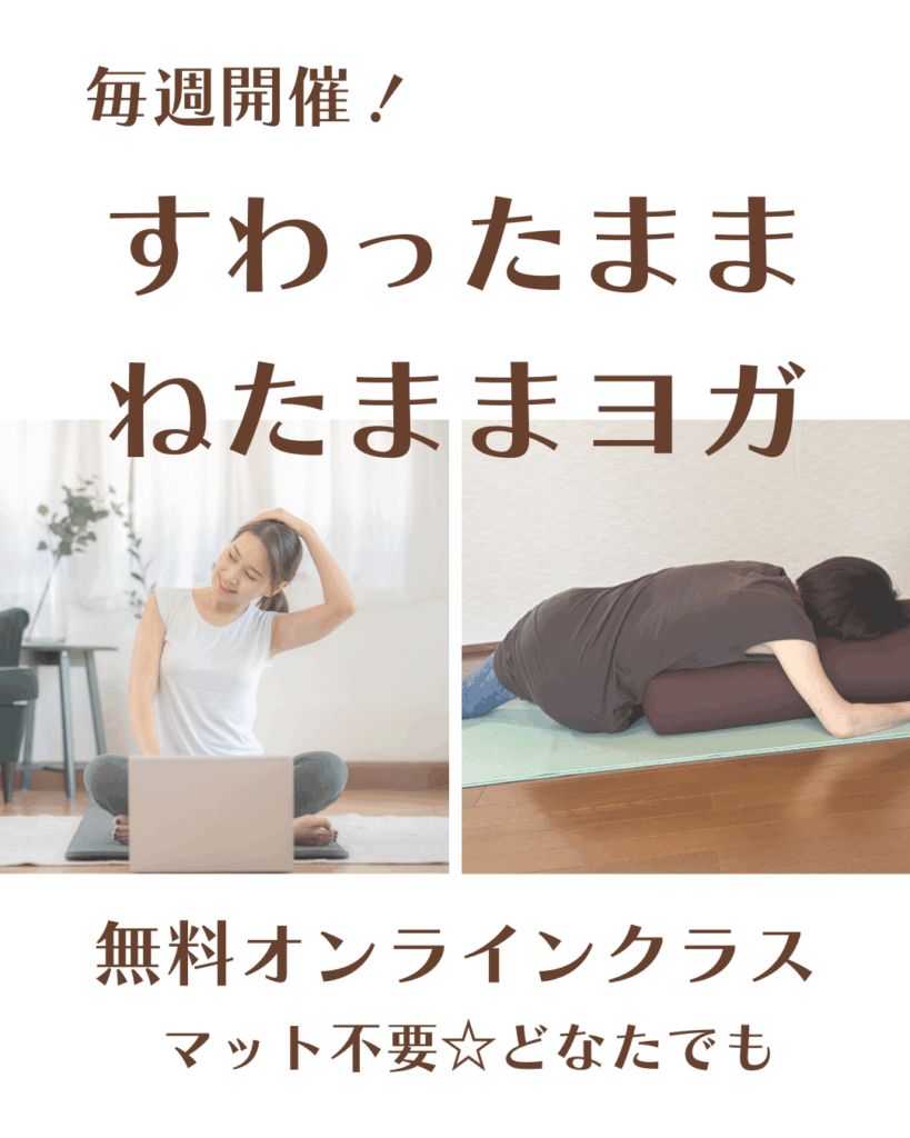 金曜日夜にすわったままねたままできるヨガを体験しませんか どなたでも参加できます マット不要 第1・3金曜チェアヨガ 第2・4金曜ねたままヨガ